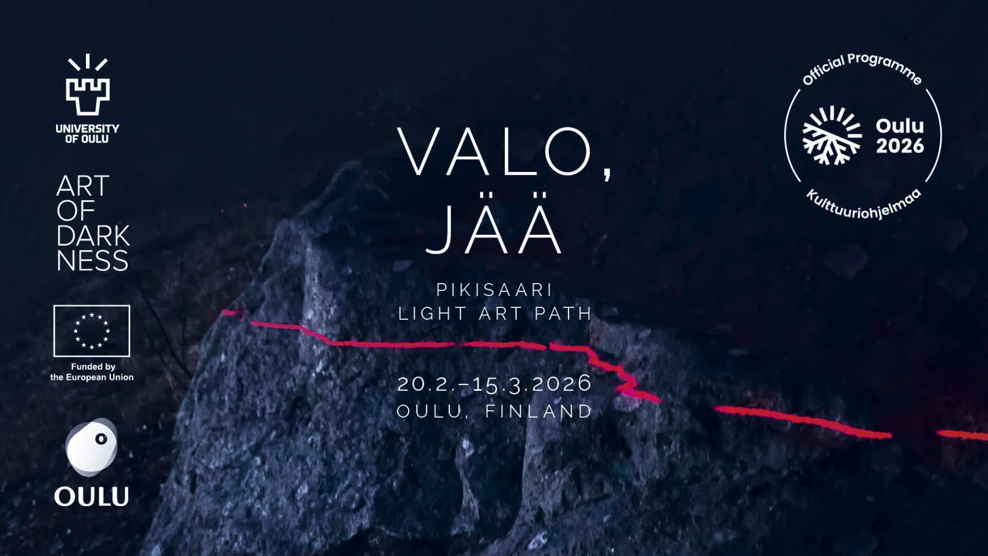 The outdoor part of the light art biennial in Pikisaari is being organised in collaboration with the University of Oulu's Art of Darkness research project. The aim of the project is to rediscover darkness as a valuable cultural, aesthetic, and ecological resource in urban landscapes and cultural heritage sites.